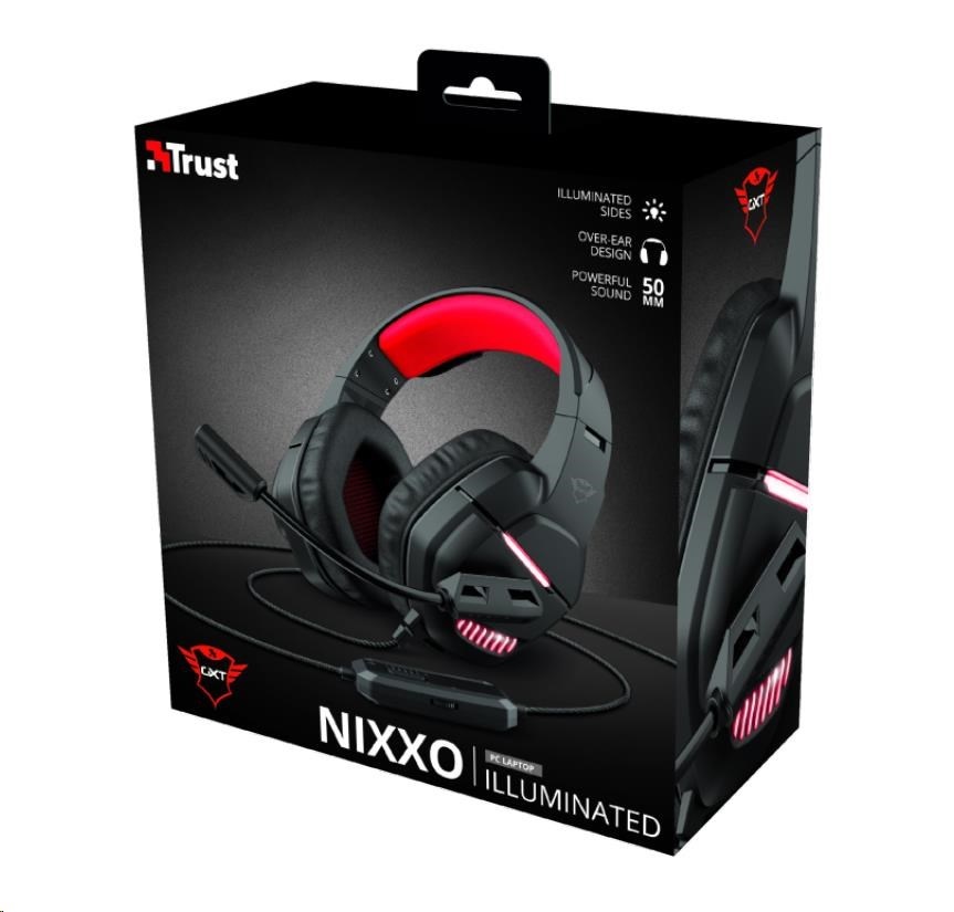 TRUST sluchátka s mikrofonem GXT 448 Nixxo Illuminated HeadsetTyp sluchátek:Plná; Rozhraní sluchátek:3.5 jack; Vlastnosti sluchátek:S mikrofonem, Ovládání hlasitosti.