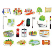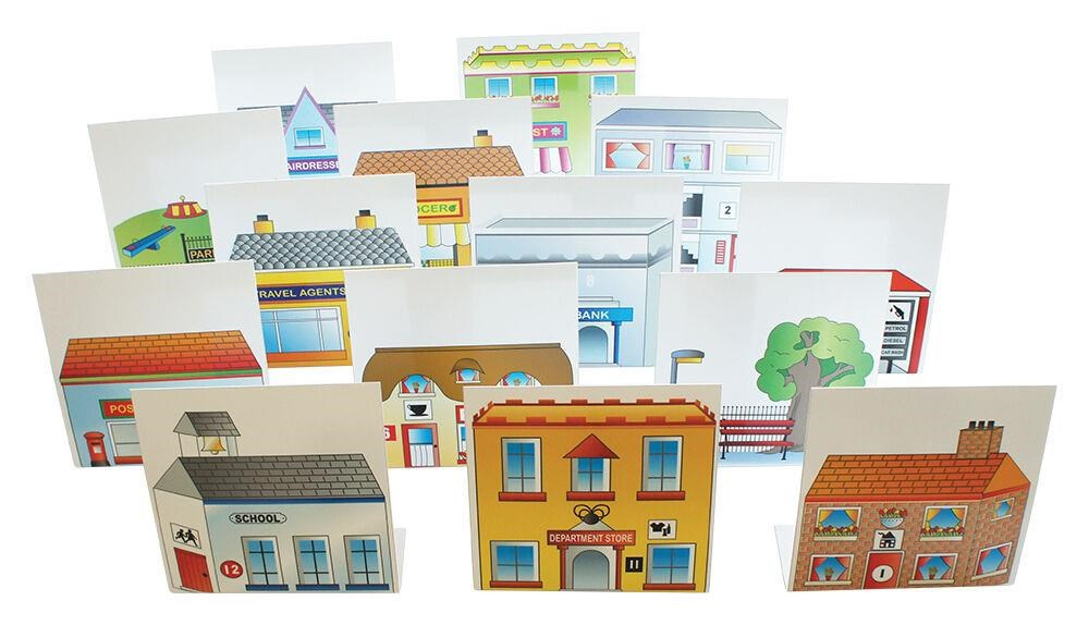 Balíček okolí pro Bee-Bot & Blue-Bot robota. Vybuduj si vlastní město pro Bee-Bota nebo Blue-Bota. Balíček obsahuje podložku, pouliční lampy, stromy, budovy a 22 dřevěných kusů pouličního nábytku.
