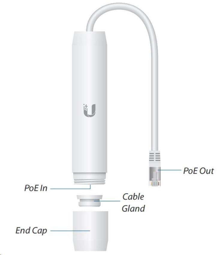 Pomocí tohoto gigabitového konvertoru je možné napájet jednotky UBNT switchem s aktivním PoE dle 802.3af (48V). Konvertor komunikuje se switchem dle 802.3af a do výstupu propouští již klasické pasivní PoE, v tomto případě 24V/0,5A. Lze použít se všemi jednotky od Ubiquity (je kompatibilní i s routerboardy od Mikrotiku).