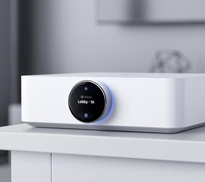 Ubiquiti UniFi PowerAmp Prémiový zesilovač navržený pro vysoce věrné vícezónové streamování zvuku a pohlcující prostorový zvuk. Nabízí výkon 130 W na kanál při 8 ohmech a poskytuje výkonný, pohlcující zvuk s podporou Dolby Atmos a Dolby TrueHD, což zaručuje prvotřídní zážitek z poslechu. UniFi PowerAmp se bezproblémově integruje s A/V UniFi pro pro jednotné nastavení sítě a zvuku, které lze snadno spravovat prostřednictvím mobilní aplikace UniFi Play. UniFi PowerAmp můžete umístit na jakýkoli rovný povrch, takže je ideální pro domácí i profesionální prostředí. Jeho kompaktní design také umožňuje instalaci do racku, kdy se dva PowerAmpy vejdou vedle sebe do 2U racku. Zařízení funguje samostatně bez nutnosti použití konzole UniFi a nabízí možnost plug-and-play instalace pro uživatele, kteří chtějí okamžitý přístup k vysoce kvalitnímu zvuku prostřednictvím analogových vstupů nebo síťového streamování přes Apple AirPlay 2 a Spotify Connect. Bezdrátové streamování zvuku s nízkou latencí díky Apple AirPlay 2 a Spotify Connect 130 W na kanál při 8 ohmech (260 W při 4 ohmech) 1,43" otočný potenciometr s dotykovým displejem 2× výstup pro reproduktor (součástí balení 2× redukce se svorkami) 1× analogový výstup RCA pro subwoofer 1× analogový vstup RCA (pro levý a pravý kanál) 1× vstup HDMI eARC s pohlcujícím prostorovým zvukem Dolby Atmos Možnost vytvořit skupinu až 32 zařízení UniFI PowerAmp Snadné nastavení, správa a ovládání skupin pomocí mobilní aplikace UniFi Play UniFi PowerAmp umožňuje seskupit až 32 jednotek pro vícezónové ovládání a zajistit tak komplexní správu zvuku ve více prostorech. Ať už přidáváte další pasivní reproduktory nebo vytváříte nové zvukové zóny, UniFi PowerAmp poskytuje výkon, flexibilitu a snadné použití nezbytné pro jakoukoli moderní audio sestavu. ZÁKLADNÍ SPECIFIKACE Výkon: 130 W při 8 ohmech na kanál 260 W při 4 ohmech na kanál Rozhraní: Wi-Fi (802.11a/b/g/n/ac), 1× audio vstup (RCA), 1× výstup pro subwoofer (RCA), 2× audio výstup pro reproduktor (2× L/R), 1× HDMI eARC vstup, 2× GbE RJ-45 Napájení: AC 100–240 V; 2,5 A; 50/60 Hz; příkon 17 W Rozměry: 236,8 × 217 × 63,7 mm Hmotnost: 2,4 kg.