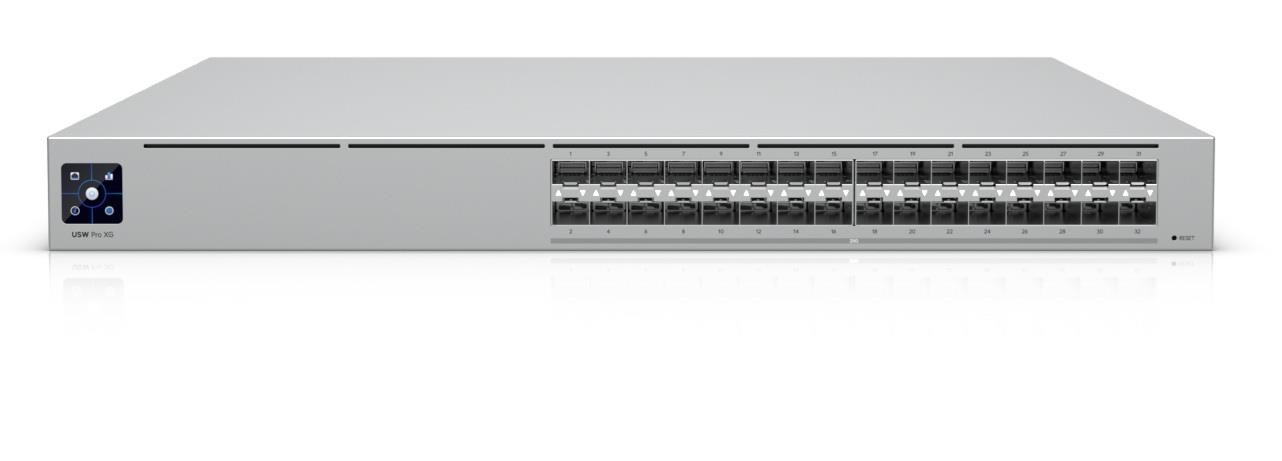 UBNT Pro XG Aggregation switchProvedení:Rack mounted 19"; Technologie:Gigabit Ethernet + 10 GbE porty; Maximální počet portů:28; Maximální počet portů:28; Management:Web.