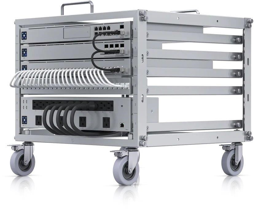 UBNT U-Rack-6U-TL, Beznástrojový mini rozvaděč, 6UPopis produktu Miniaturní stojanový montážní rám na kolečkách o velikosti 6U, hloubkou 460 mm a spec