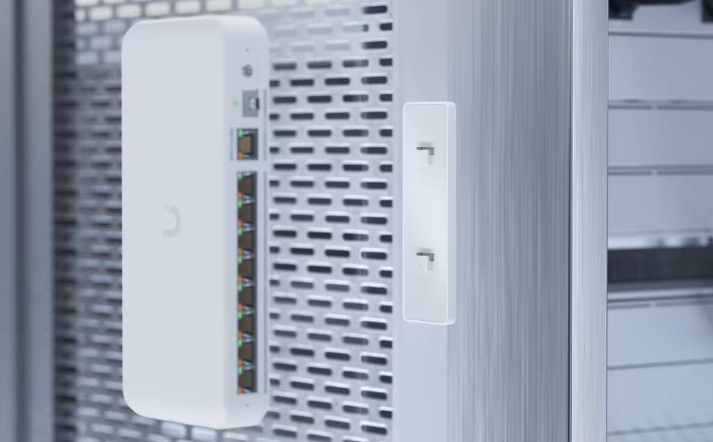 Sleek magnetic wall mount for UniFi compact switches..