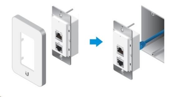 Ubiquiti UniFi AC In-Wall je velmi malé a diskrétní 802.11ac UAP zařízení pro montáž pod omítku. Jedná se o 2x2 MIMO 2,4GHz a 2x2 MIMO 5GHz Acess Point s přenosovou rychlostí až 1167 Mbps a podporou norem 802.11a/b/g/n/ac. UAP-AC-IW je určeno pro kanceláře a hotely. Anténní systém obsahuje 1 vestavěnou anténu se ziskem 1dBi pro pásmo 2.4GHz a 2dBi pro pásmo 5GHz s dosahem do vzdálenosti až 25 metrů. Plně podporuje také roaming při předávání asociovaných klientů mezi jednotlivými AP. Dále co se rozhraní týče, zařízení obsahuje 3x 10/100/1000Mbps LAN s podporou PoE IN na zadním portu a PoE Out na předním portu a to vždy přes PoE normu 802.3af.