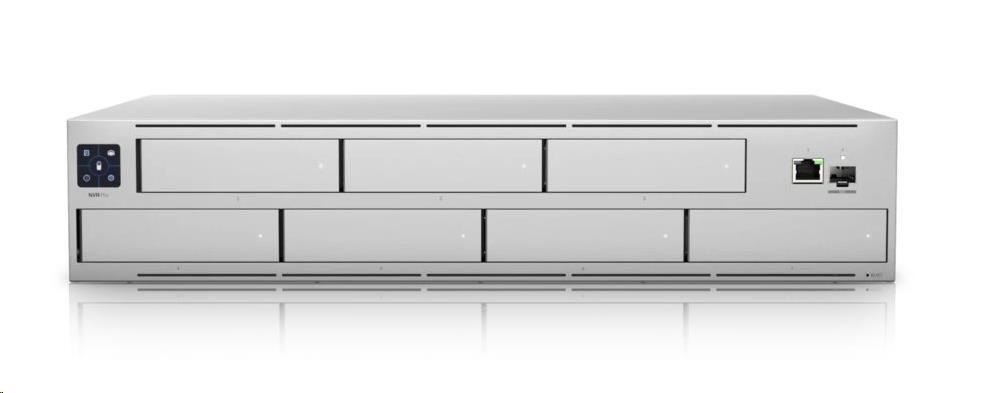 Kamerový síťový rekordér UNVR-Pro je 2U Rackmount NVR zařízení od Ubiquiti Networks s předinstalovanou aplikací UniFi Protect pro nahrávání kamer UVC od Ubiquiti Networks. NVR má výkon pro nahrávání až 60 kamer ve FullHD rozlišení nebo 20 kamer ve 4k rozlišení a uchováním záznamu po dobu 60 dnů. NVR podporuje až 7 diskových pozic pro SSD/HDD s maximální kapacitou 16TB/disk, popdoruje RAID 1 / 5 / 10 pro vyšší spolehlivost uchování dat, má 3" dotykový displej, který s pozdější verzí bude umožňovat i náhled videa, Gigabit LAN port, SFP+ port s podporou rychlostí 1 G/10 Gbps a redundantní napájení pomocí UniFi SmartPower (USP-RPS).