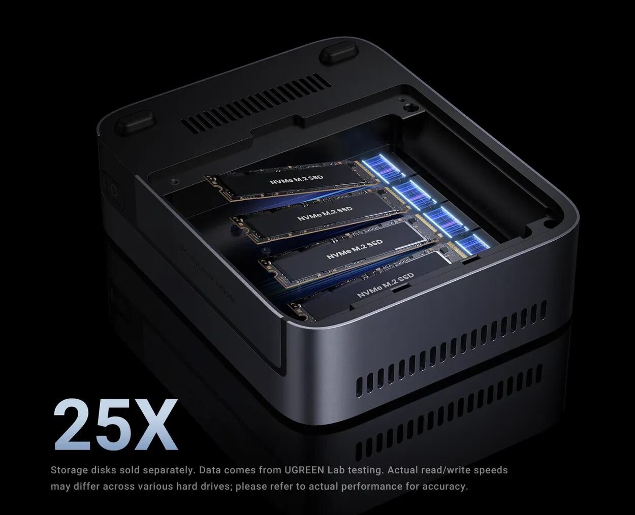 - UGREEN NAS DXP480T Plus obsahuje 4 NVMe M.2 sloty pro extrémně rychlé SSD disky