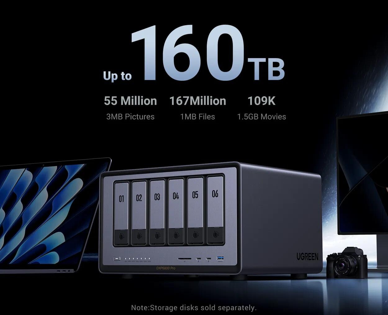 - UGREEN NAS DXP6800 Pro nabízí až 160 TB kapacity pro ukládání souborů
