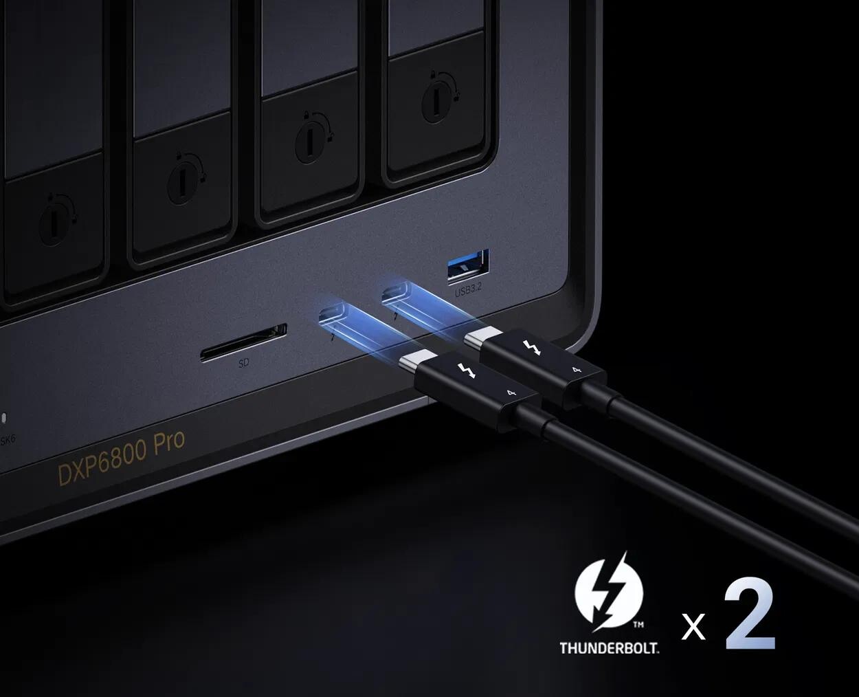 UGREEN NAS DXP6800 Pro umožňuje ultrarychlé datové přenosy díky dvojici Thunderbolt 4 portů