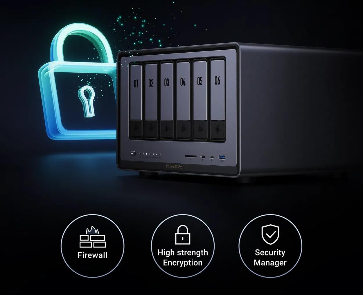 - NAS DXP6800 Pro disponuje špičkovým zabezpečením