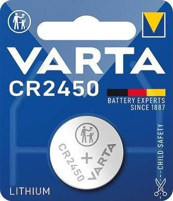 Varta CR 2450Produkt:Baterie; Typ baterie:Jednorázová; Velikost článku:Knoflíková; Typ článku:Lithiový; Obsah balení:1.