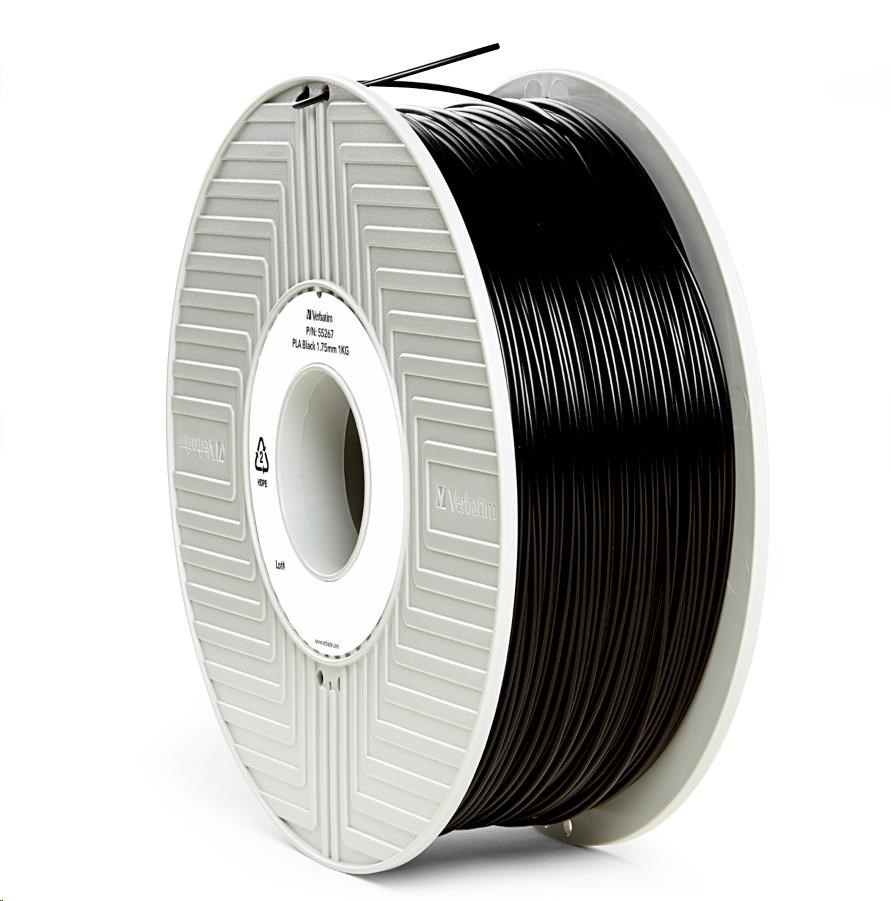 VERBATIM 3D Printer Filament PLA 1.75mm, 335m, 1kg blackTyp materiálu:PLA; Barva:Černá; Průměr struny:1,75 mm; Pracovní teplota:190 - 220 °C; Balení:1 000 gramů.