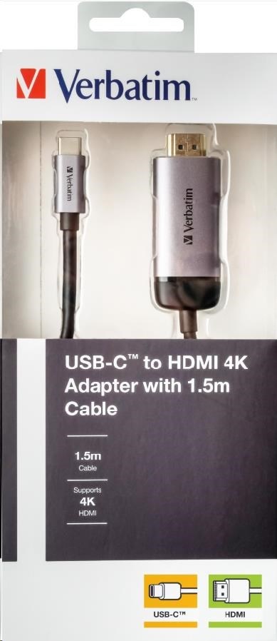 VERBATIM Adapter HUB USB-C to HDMI, 1.5 cableSpecifikace kabelu / redukce:USB-C, HDMI kabel, Adaptér, Redukce.