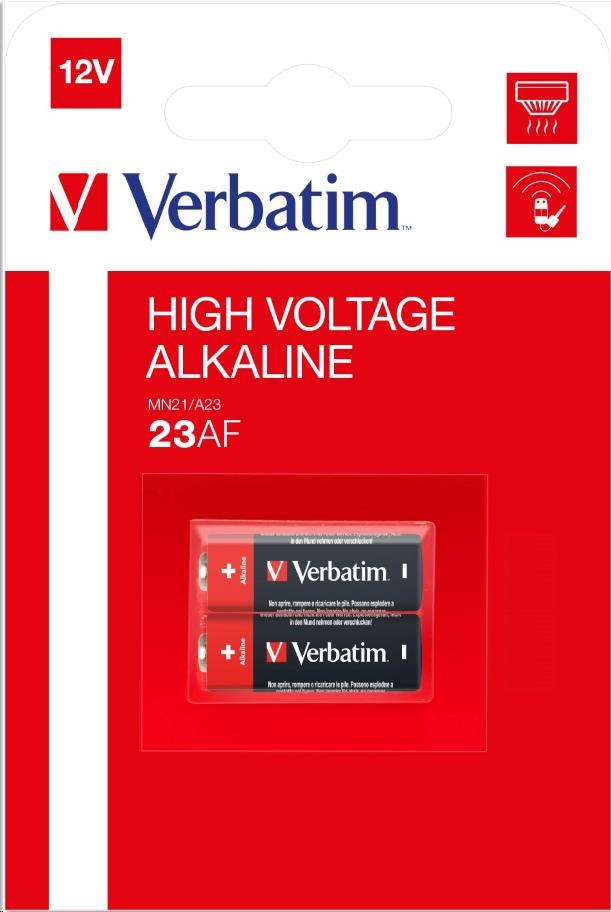 VERBATIM Alkalické baterie 23AF (MN21/ A23/ 23AE ) 12V 2 PkProdukt:Baterie; Typ baterie:Jednorázová; Velikost článku:Ostatní; Napětí (V):12; Typ článku:Alkalický; Obsah balení:2.