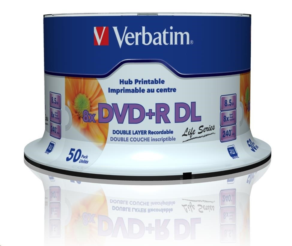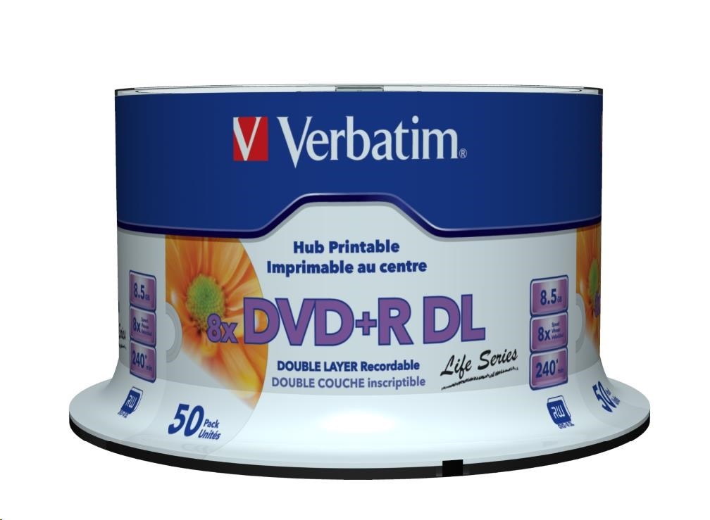 Kód: 714022Prodejní číslo: 97693VERBATIM DVD+R Double Layer 8.5GB 8X 50 Pack Spindle