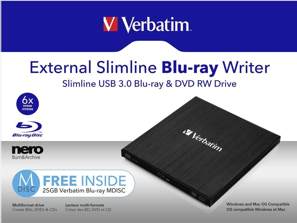 Diskuze k produktu VERBATIM externí mechanika Slimline Blu-ray Rewriter USB 3.0 Zdarma BR Disc 25GB (CD DVD BD Mdisc) +NERO