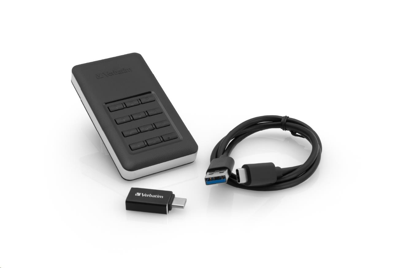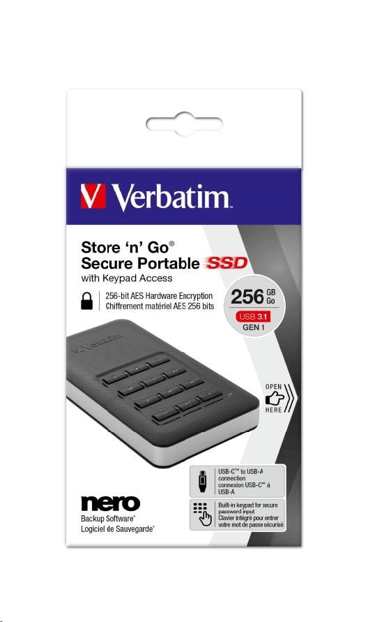 VERBATIM externí SSD Incl.KEYPAD 256GB USB3.1 GDPRPoužití disku:Externí disky; Rozhraní:USB 3.1 Type C; SSD Kapacita (GB):256; Typ disku:SSD externí; Velikost bufferu (v MB):64.