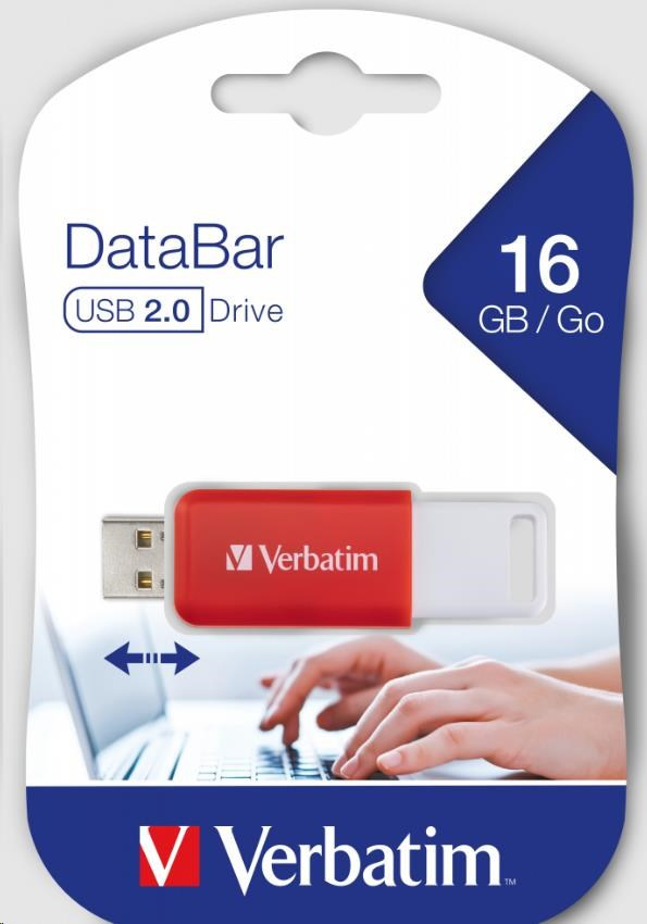 VERBATIM Flash Disk 16GB DataBar USB 2.0 Drive, červenáKapacita uložiště:16 GB; Verze USB:2.0.