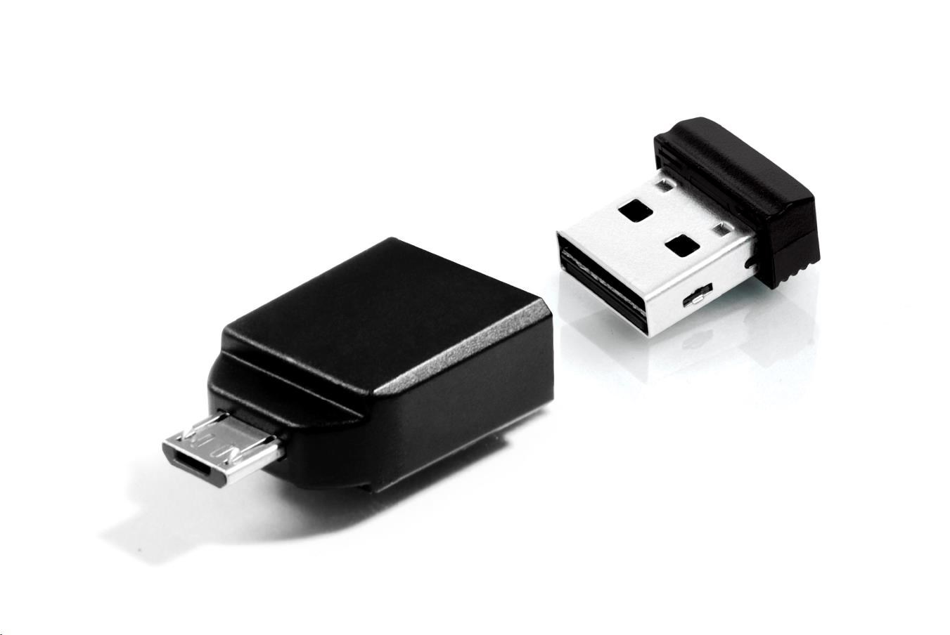 VERBATIM Flash Disk 16GB Store 'n' Stay NANO + micro USB OTG adaptér, USB 2.0, černáKapacita uložiště:16 GB; Verze USB:2.0.