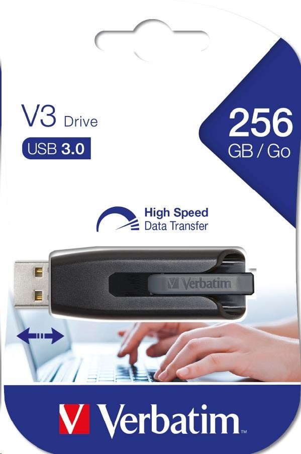 VERBATIM Flash Disk 256GB Store 'n' Go V3, USB 3.0, černáKapacita uložiště:256 GB; Verze USB:3.0.