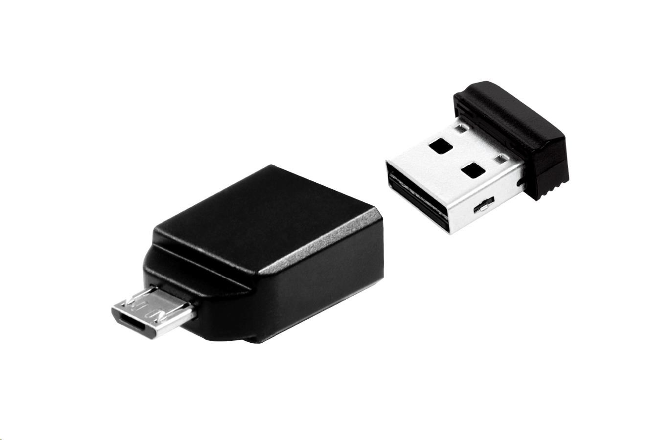 VERBATIM Flash Disk 32GB Store 'n' Stay Nano + micro USB OTG adaptér, USB 2.0, černáKapacita uložiště:32 GB; Verze USB:2.0.
