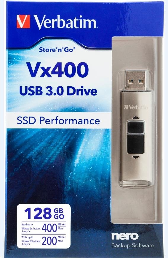 Kód: 711794Prodejní číslo: 47690VERBATIM Flash Drive 128GB Store 'n' Go, SSD Vx400, USB 3.0, stříbrná