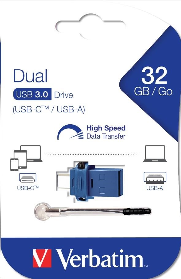 Kód: 714013Prodejní číslo: 49966VERBATIM Flash Drive 32GB Store 'n' Go Dual Drive USB 3.0/USB Type-C, modrá