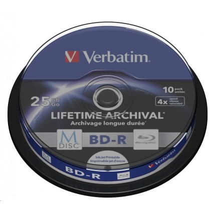 VERBATIM MDisc BD-R(10-pack)Spindle/4x/25GBTyp média:Bluray BR-R; Druh balení média:Spindle.
