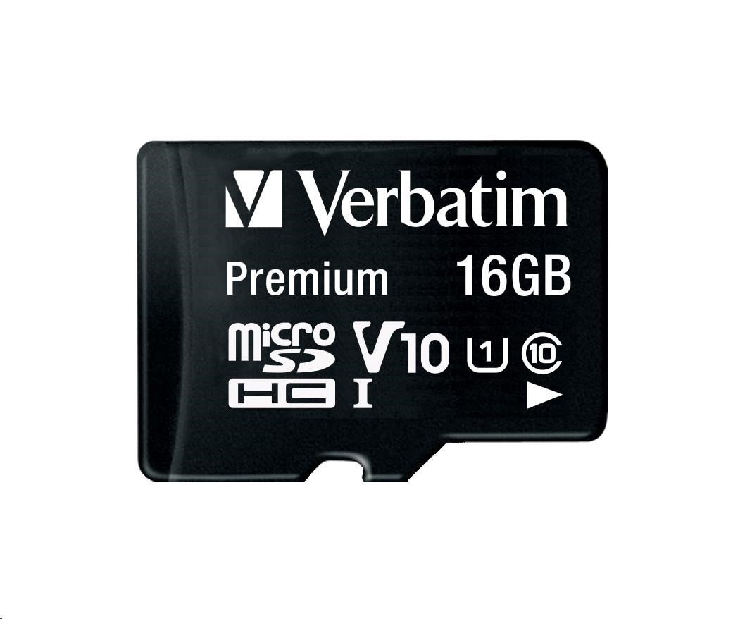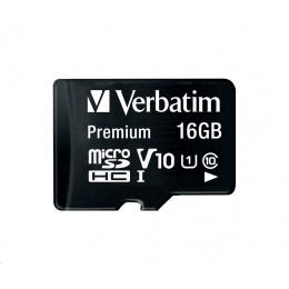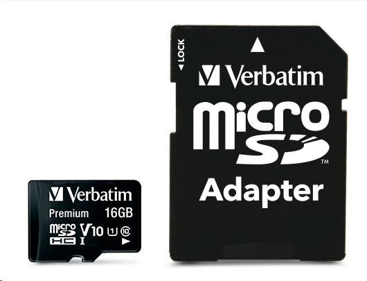 VERBATIM MicroSDHC karta 16GB Premium, U1 + SD adaptérTyp karty:Micro SDHC; Kapacita uložiště:16 GB.