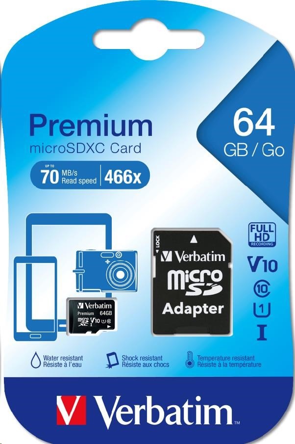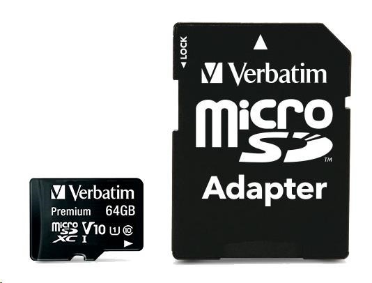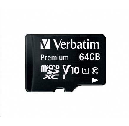 VERBATIM MicroSDXC karta 64GB Premium, U1 + adaptérTyp karty:Micro SDXC; Kapacita uložiště:64 GB.