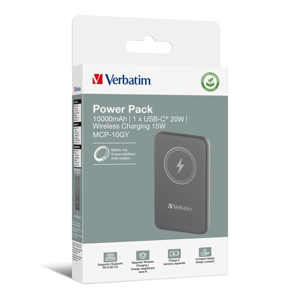 VERBATIM Powerbanka Charge 'n' Go, Magnetická, 10000 mAh, USB-C, ŠedáTyp příslušenství:Powerbanky.