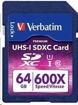 VERBATIM SDXC karta 64GB PREMIUM, UHS-1, Class 10 (R:90/W:25 MB/s)