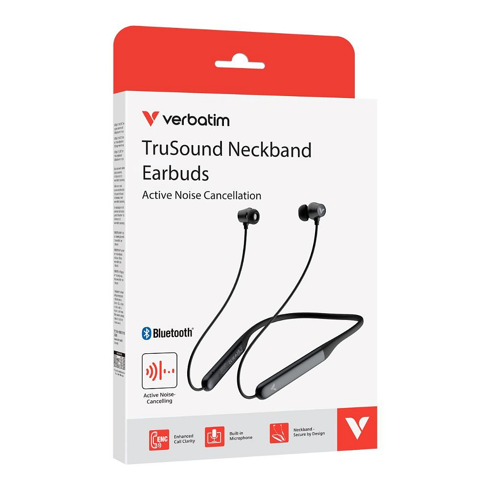 VERBATIM sluchátka TruSound ANC, Bezdrátová, BT, černáTyp sluchátek:Špunty; Konstrukce:Uzavřené; Využití:Hraní, Poslech hudby; Konektivita:Bluetooth; Mikrofon; Konstrukce mikrofonu:Integrovaný; Funkce mikrofonu:Potlačení ozvěny, Potlačení šumu; Způsob ztlumení mikrofonu:Přepínačem; Vedení kabelu:Oboustranné; Podporované kodeky:A2DP, AVRCP, HFP, HSP.