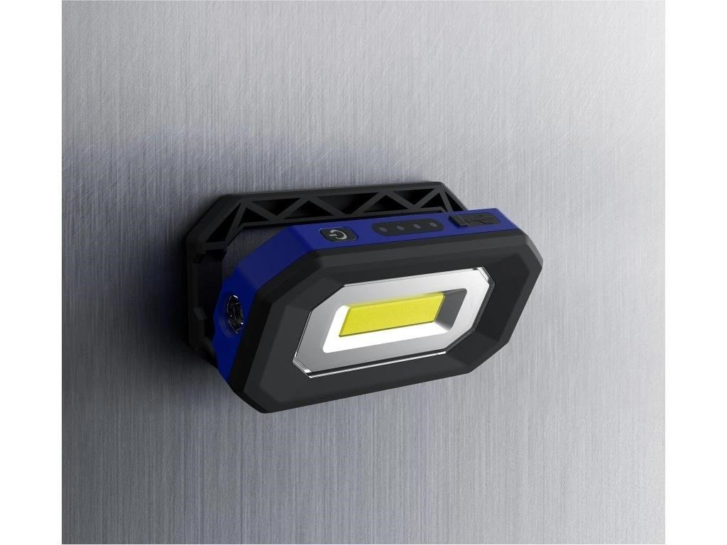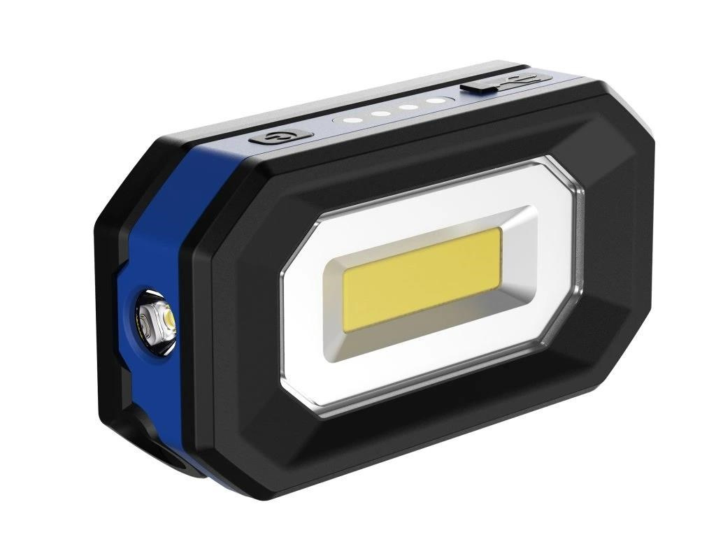 - Dvě světla pro lepší pokrytí: Hlavní světlo (COB): Svítivost až 500 lm pro intenzivní osvětlení pracovního prostoru. Boční kulaté světlo (SMD): 150 lm pro menší, přenosné osvětlení v těsných prostorech.