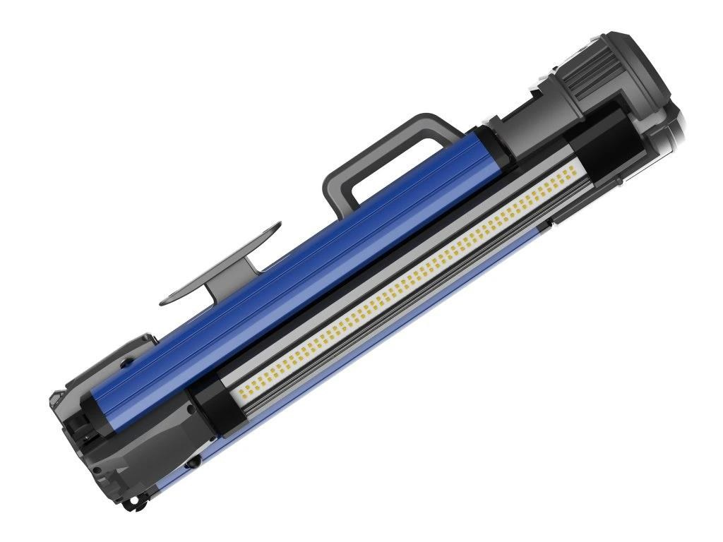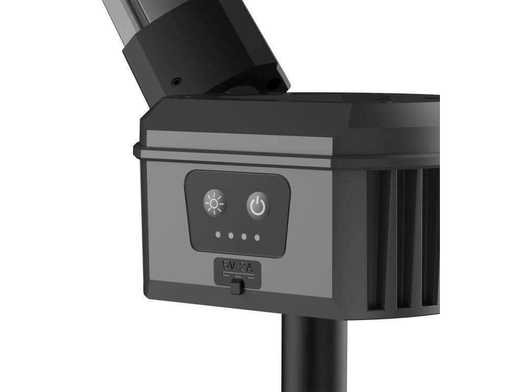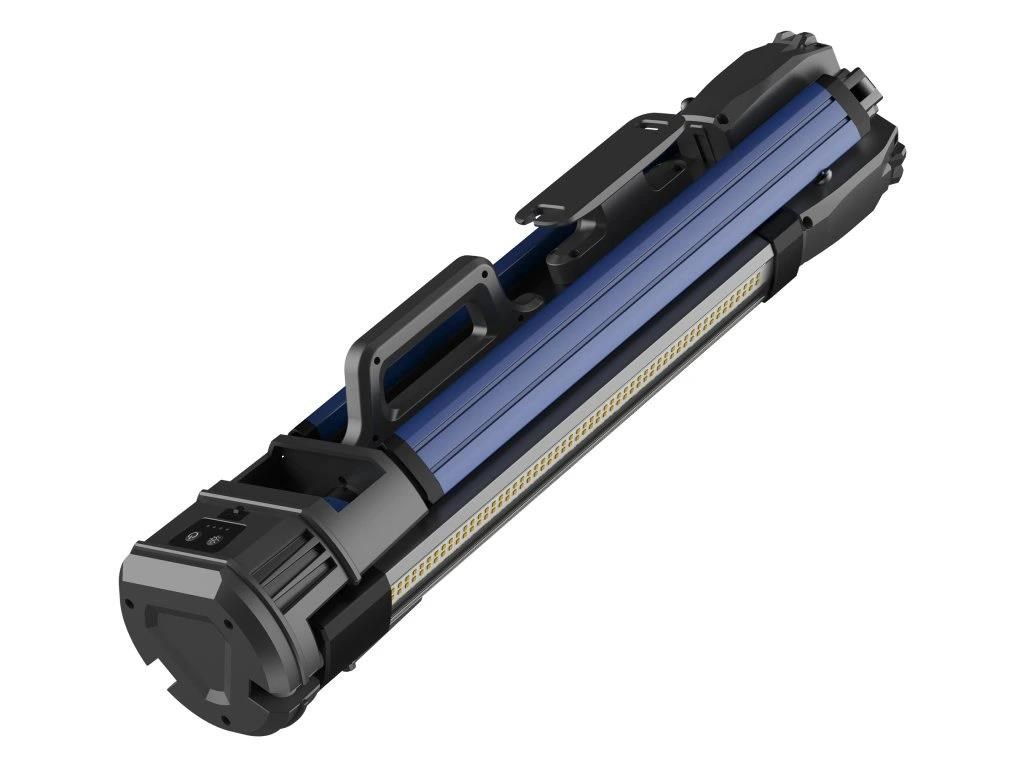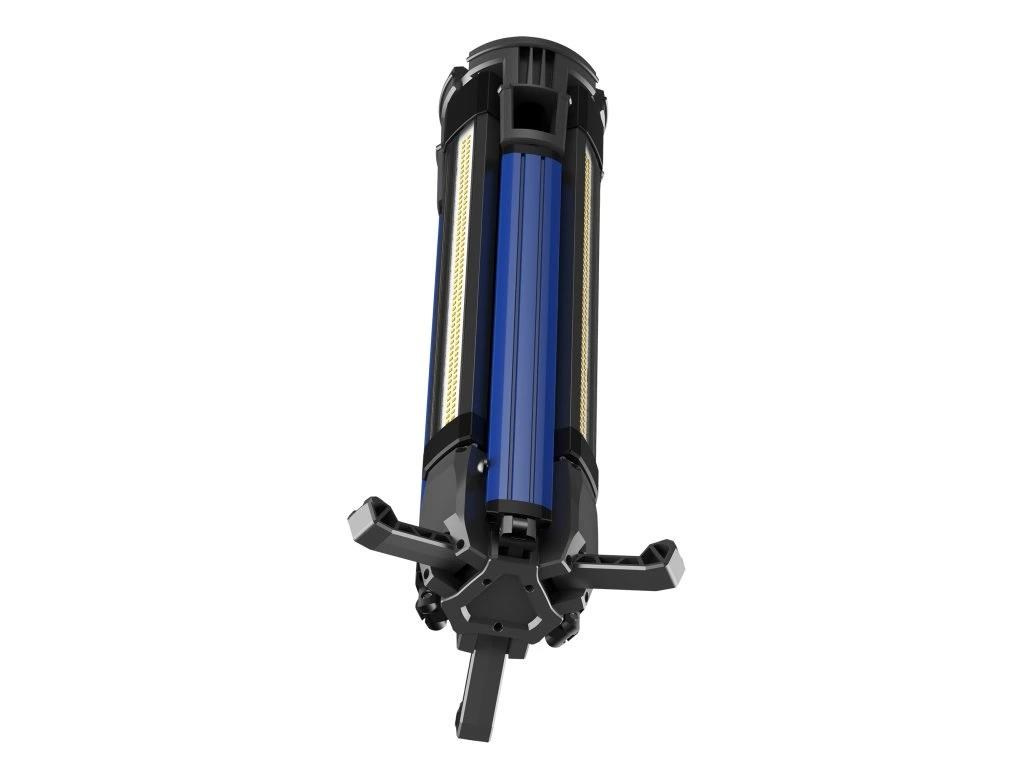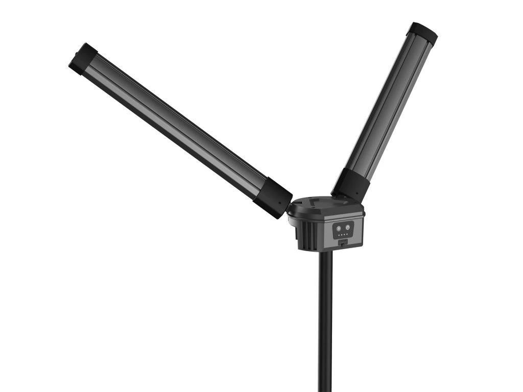 - Flexibilní použití: Světlo lze použít i ve složeném stavu – stačí otočit jednotlivá světla směrem ven a vysunout nožičky pro stabilní postavení.