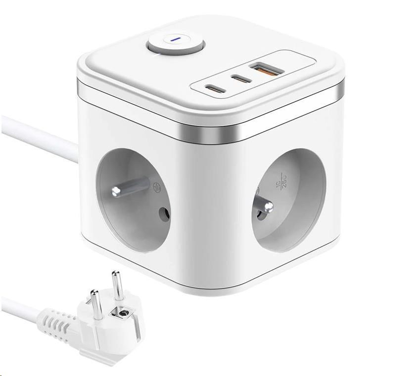 Diskuze k produktu Viking síťový adaptér YC33, 3x 230 V, 1x USB-A, 2x USB-C, tlačítko ON/OFF, délka 1,4 m, bílá