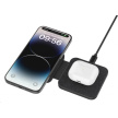 Nabíječka nabízí dva bezdrátové výstupy, které umožňují nabíjení dvou zařízení současně, což je ideální pro mobilní telefony, hodinky a sluchátka. Výstupní výkon pro mobilní zařízení dosahuje až 15W, zatímco pro hodinky a sluchátka poskytuje výkon až 2,5W. Součástí balení je také USB-C kabel o délce 1 m, který zajišťuje kompletní vybavení pro rychlé a efektivní nabíjení.