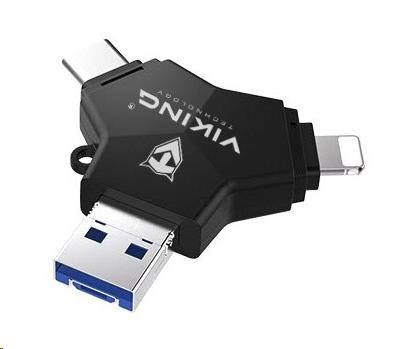 Viking USB Flash disk 3.0 4v1 s koncovkou Lightning/Micro USB/USB/USB-C, 64 GB, černá