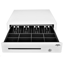 Virtuos pokladní zásuvka C420D - s kabelem, kovové držáky, 9-24V, bílá