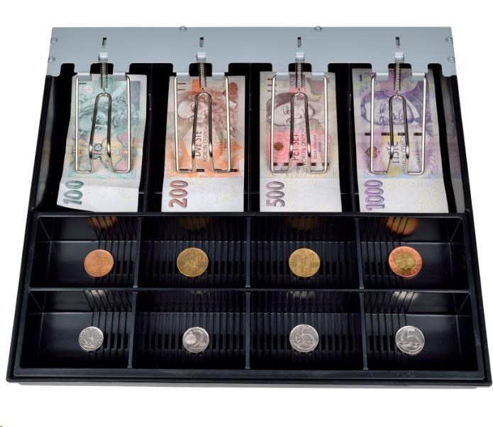 | Přihrádky | 4× pro bankovky 8× pro mince - vyjímatelný mincovník |