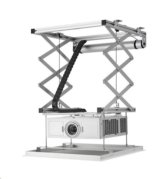 Výtah na projektor PPL2100 je perfektní řešení pro estetickou integraci větších a těžkých projektorů do stropu. Nejen že je projektor pěkně schován, ale je i zároveň lépe chráněn proti krádeži. Výtah pracuje velmi tiše a nabízí dvě nastavitelné pozice - výchozí a promítací.Výtah byl vyvinut pro instalaci do stropních podhledů, které poskytují velmi málo místa. V rámci podhledu je požadováno pouze 15,5 cm minimální výšky k instalaci výtahu a projektoru. Konstrukce umožňuje pokles až o 81,5 cm. Maximální nosnost výtahu je 30 kg.