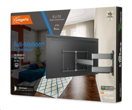 Vogel's TVM 5845 TV rameno 3 klouby XLExtra tenký držák, TV 55-100", natáčení 180°, hloubka 40-740 mmVESA do 600x400, 55 kg, černé.