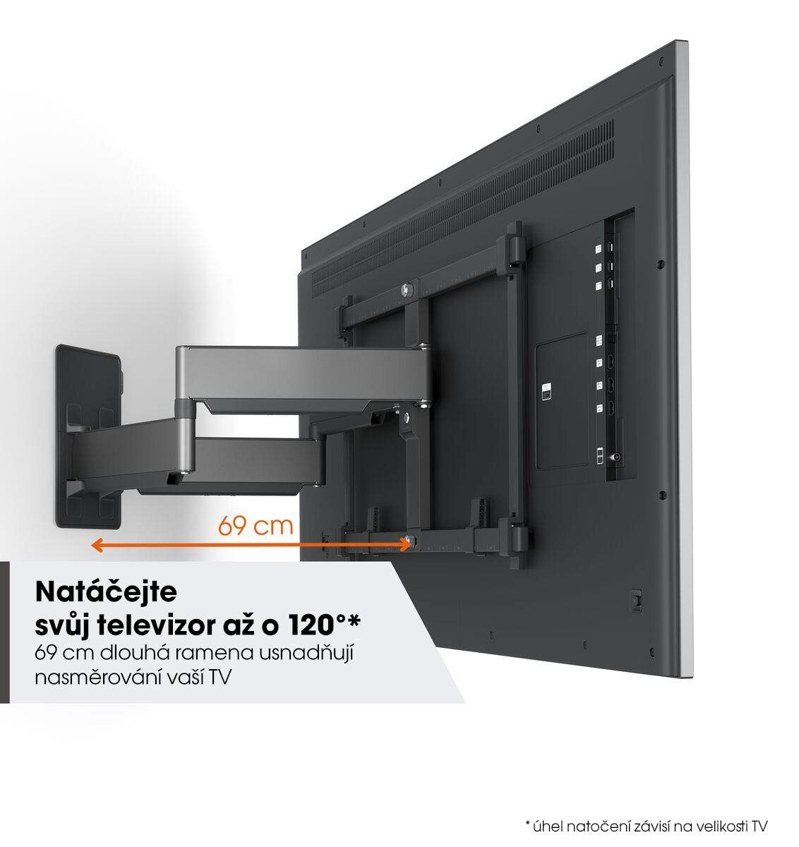 - odtažení TV od stěny na 69,7 cm, natáčení do stran 120° (maximální úhel natočení závisí na šířce konkrétní TV)