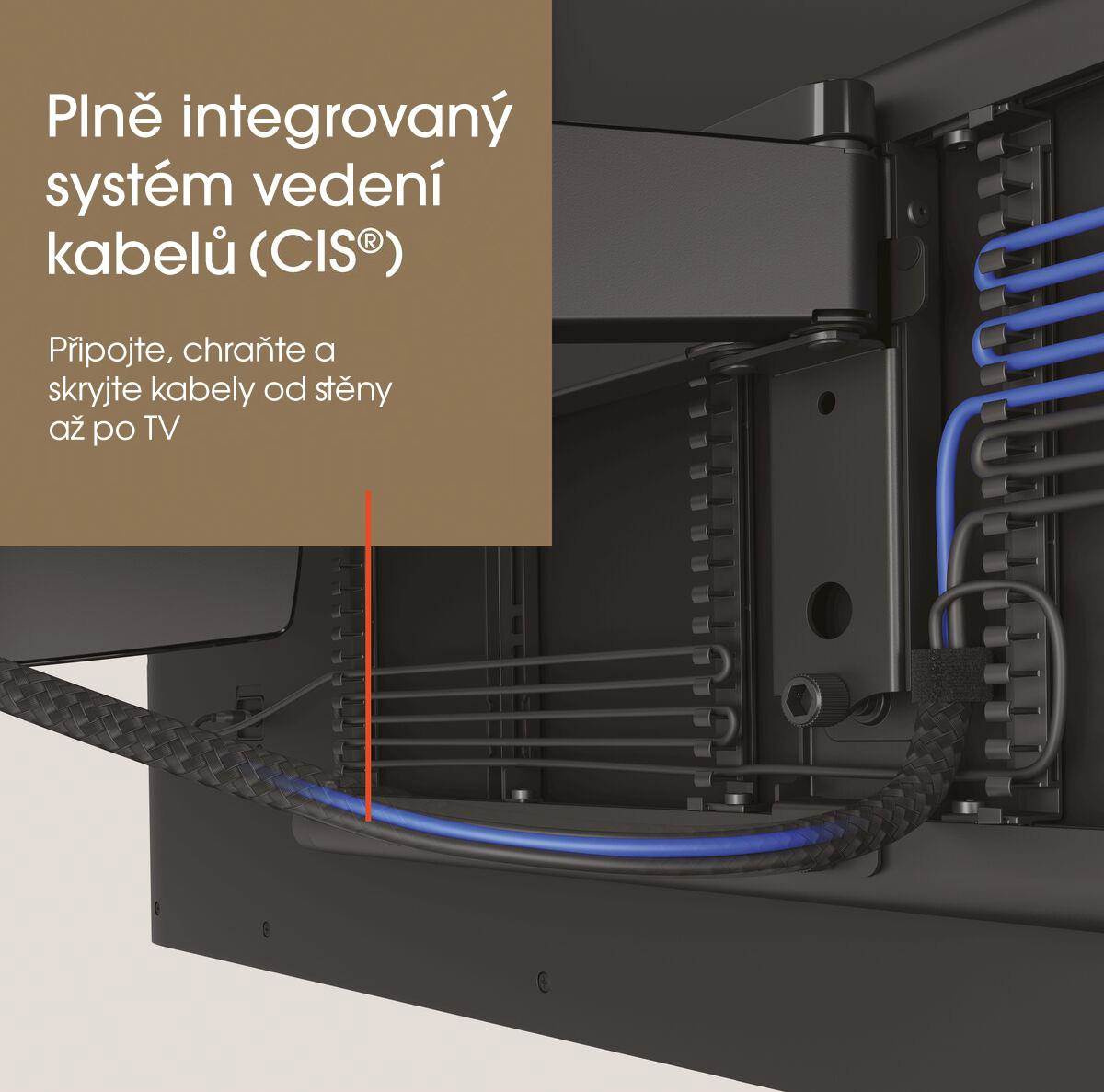 - Plně integrovaný systém vedení kabelů (CIS®) - Připojte, chraňte a skryjte kabely od stěny až po televizor