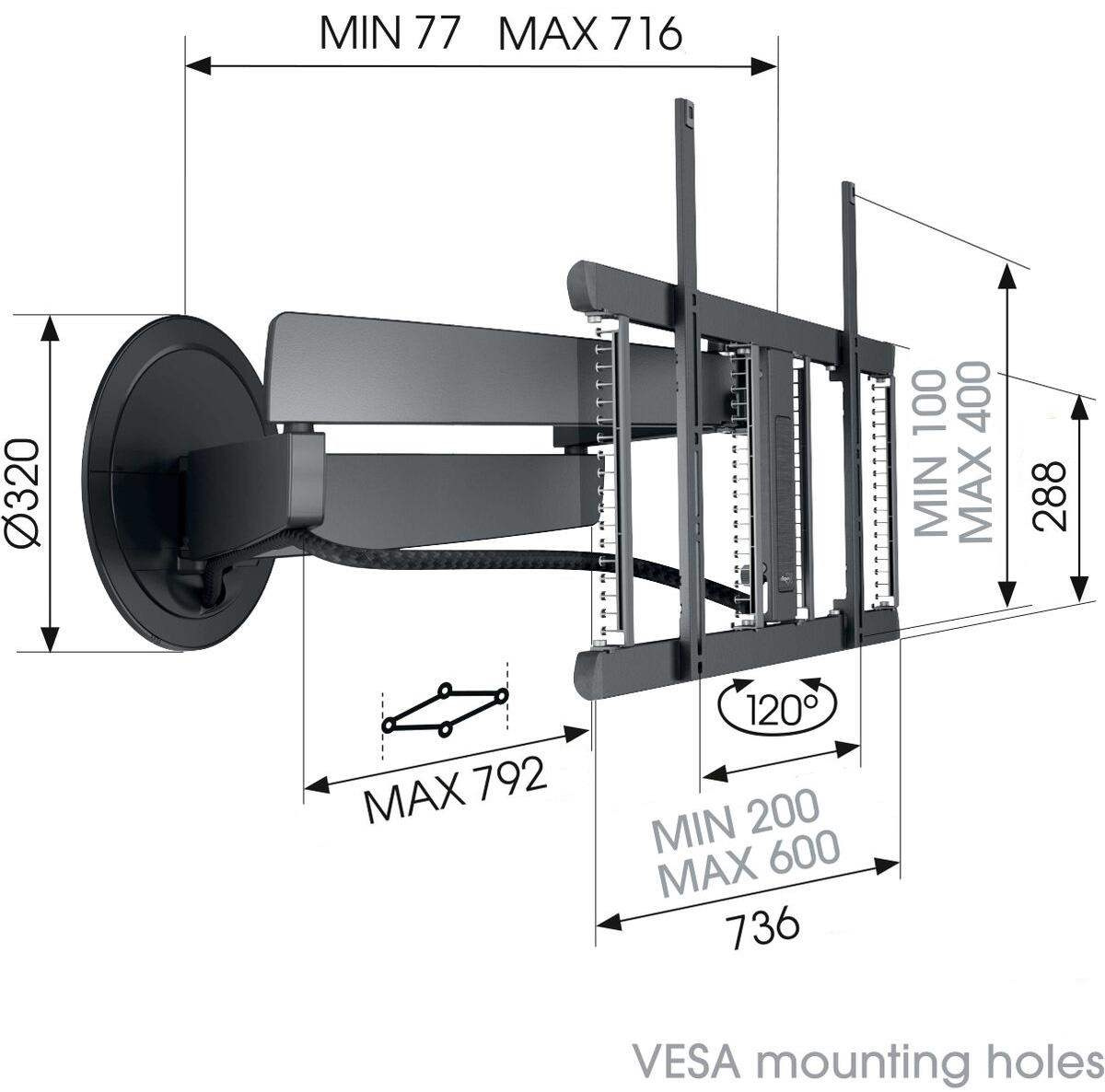 S nástěnným držákem TV DesignMount z řady SIGNATURE vnesete do svého domova absolutní designový zážitek. Tento nástěnný TV držák na televizor vytváří vlastní třídu, pokud jde o design, kvalitu a komfort. Stylový, minimalistický design se dokonale snoubí s nejnovější generací velkých a tenkých televizorů, jako jsou televizory OLED a QLED. Držák je vhodný pro obrazovky o velikosti 40 až 77 palců a s maximální hmotností 35 kg. Pro maximální požitek ze sledování jej můžete natočit až o 120°.