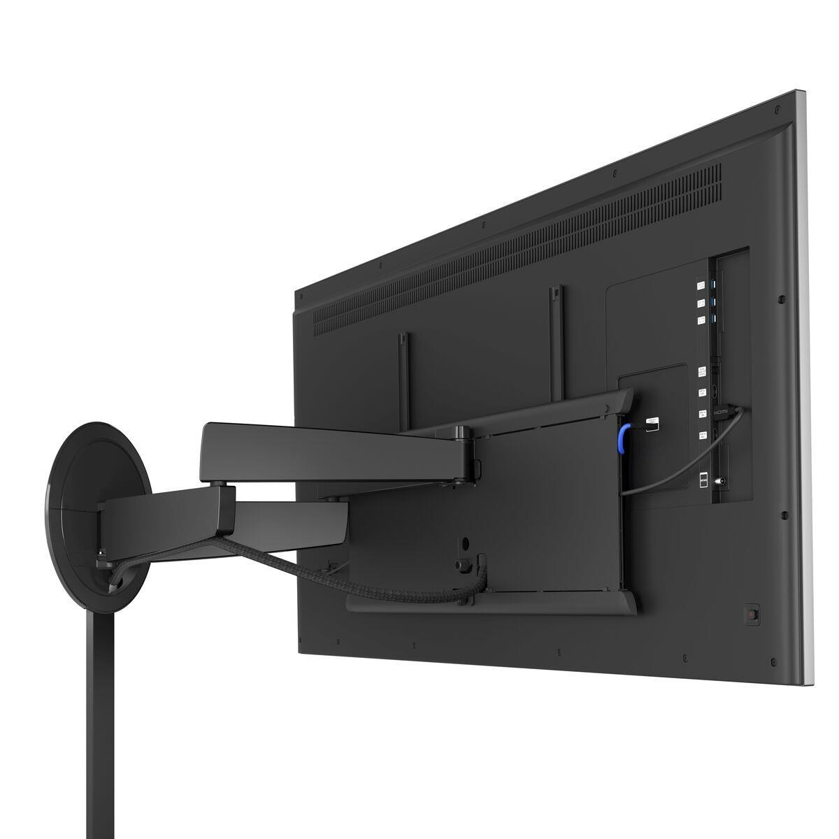 MotionMount má velký rozsah pohybu vpřed díky 4 dlouhým a silným opěrným ramenům. Motorizovaný pohyb umožňuje posunout televizor dopředu až o 72 cm. Díky tomu je nástěnný držák televizoru vhodný i pro montáž do skříně nebo výklenku.