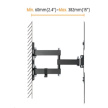 Výsuvný nástěnný držák LPA68-443 je určen pro instalaci TV s plochou obrazovkou s úhlopříčkami od 23“ do 55“. Má robustní výsuvnou konstrukci, díky níž unese TV o hmotnosti až 30 kg, zároveň je možné nastavit vzdálenost TV od stěny v rozsahu 60 mm až 382 mm. Samozřejmostí je pak také velký rozsah polohování. Držák umožňuje snadné naklápění TV v rozsahu +3°~-10° a natočení do stran v rozsahu +90°~-90°, což zaručuje pohodlné sledování z libovolného místa v místnosti. Integrovaná svorka na kabely udržuje kabely uspořádané a chráněné.