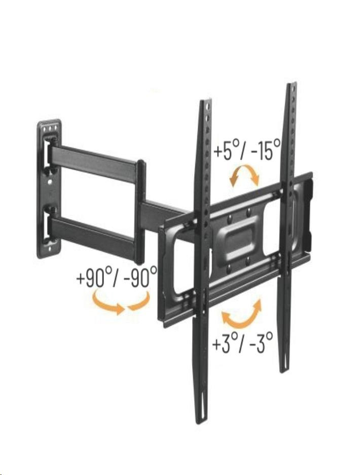 - Volně sklopitelná konstrukce pro jednoduchou změnu náklonu TV v úhlu +5°~-15°