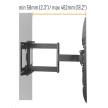 Výsuvný nástěnný držák LPA69-463D je určen pro instalaci TV s plochou obrazovkou s úhlopříčkami od 32“ do 70“. Jeho největší přednostní je robustní výsuvná konstrukce, díky níž unese TV o hmotnosti až 45 kg a zároveň umožňuje nastavit vzdálenost TV od stěny v rozsahu 58 mm až 462 mm, samozřejmostí je pak také velký rozsah polohování. Držák umožňuje snadné naklápění TV v rozsahu +5°~-15°, natočení do stran v rozsahu +90°~-90° a rotaci v rozsahu +3°~-3°, což maximalizuje flexibilitu sledování z libovolného místa v místnosti. Integrovaná svorka na kabely udržuje kabely uspořádané a chráněné.