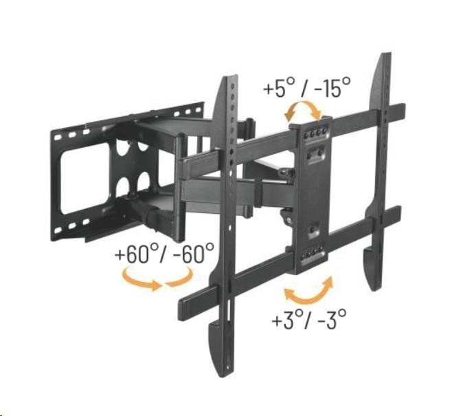 - Výsuvná konstrukce s možností stranového natočení v rozsahu +60°~-60°