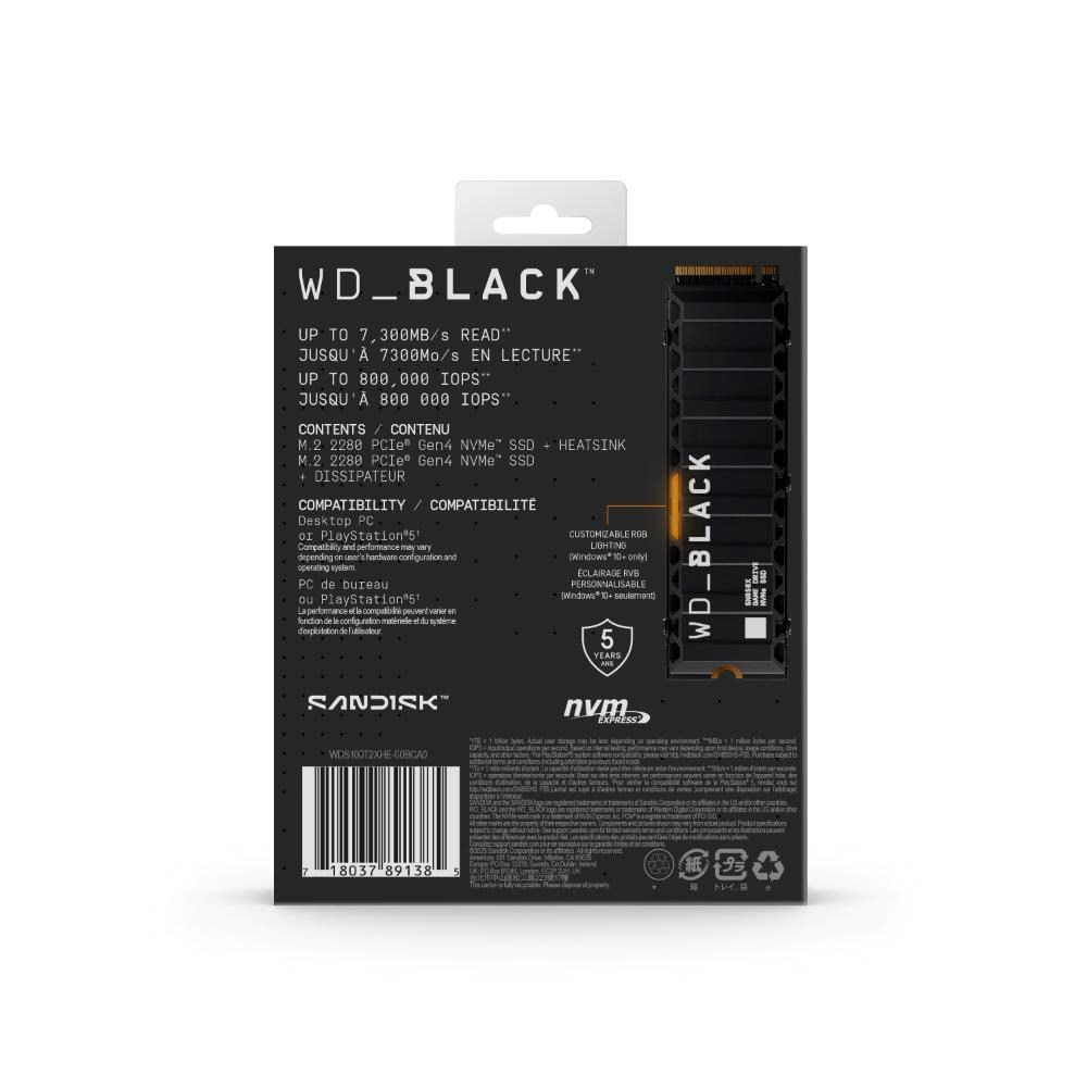 WD BLACK SSD NVMe 1TB PCIe SN850X Powered by SanDisk, Gen4, (R:7300, W:6300MB/s), ChladičPoužití disku:Pro PC; Formát:M.2; Rozhraní:NVMe; SSD Kapacita (GB):1000; Typ disku:SSD NVMe; Rychlost čtení MB/s:7000MB/s a víc; Rychlost zápisu MB/s:6000MB/s a víc; Typ paměti SSD:3D TLC; Chladič disku; Životnost zápisu SSD v TB:Min. 600 TBW.
